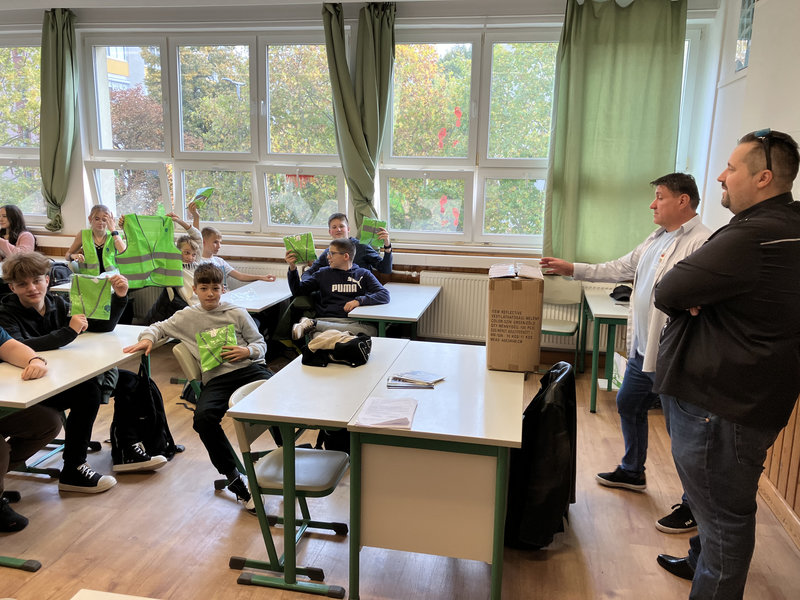 Az Oroszlányi Rendőrkapitányság kollégái a felelős internethasználatról és a biztonságos közlekedés szabályairól tartottak előadást a 7.b osztálynak. A rendőrök nem érkeztek üres kézzel: láthatósági mellényeket hoztak a diákoknak, így a kerékpározás és rollerezés során minden közlekedő jobban tud ügyelni rájuk.